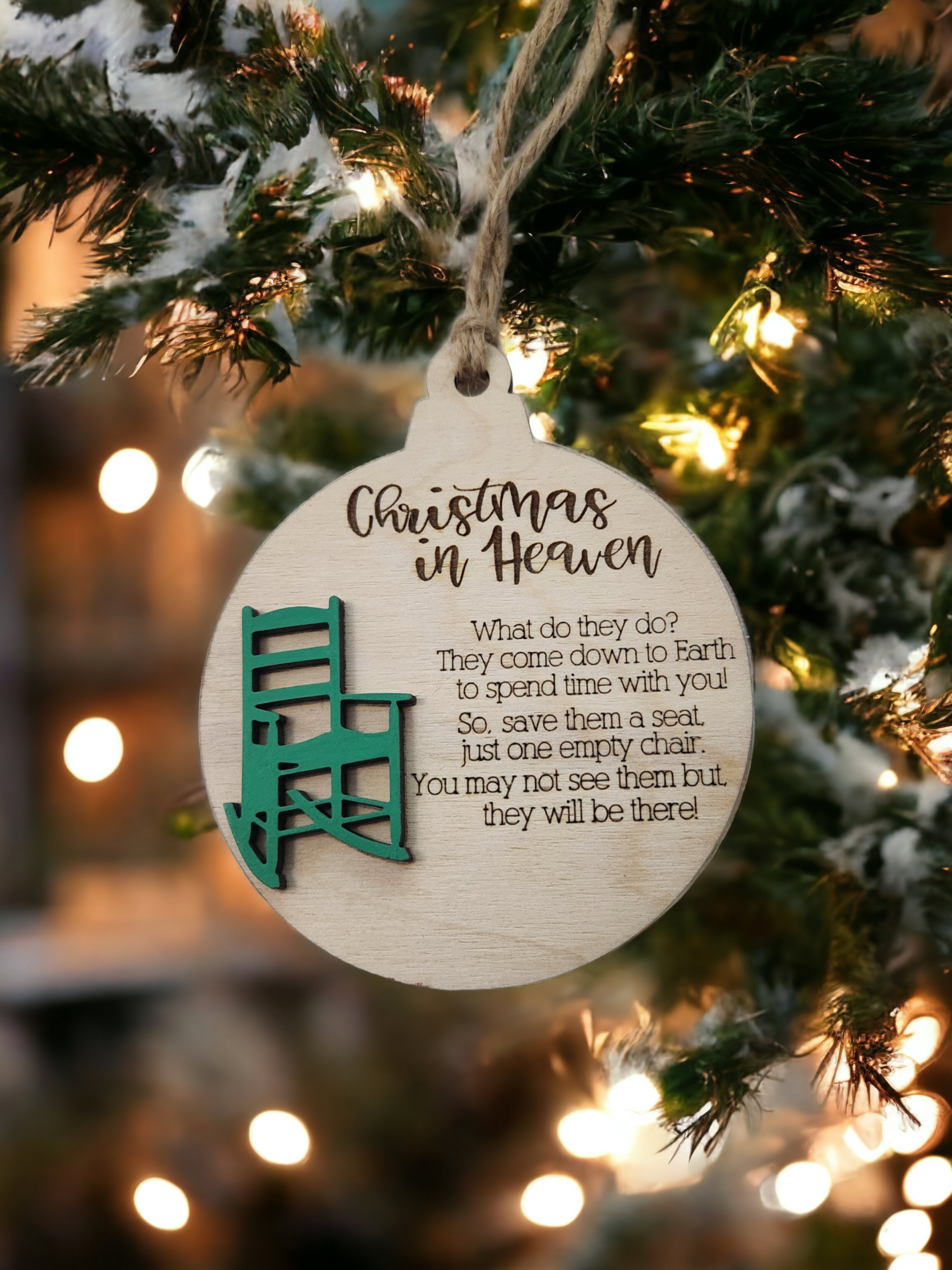 Celebrate the magic of Christmas and the enduring love that transcends time with our Handmade Wooden Christmas in Heaven Ornament. Order yours today and let the spirit of the season shine brightly on your tree."