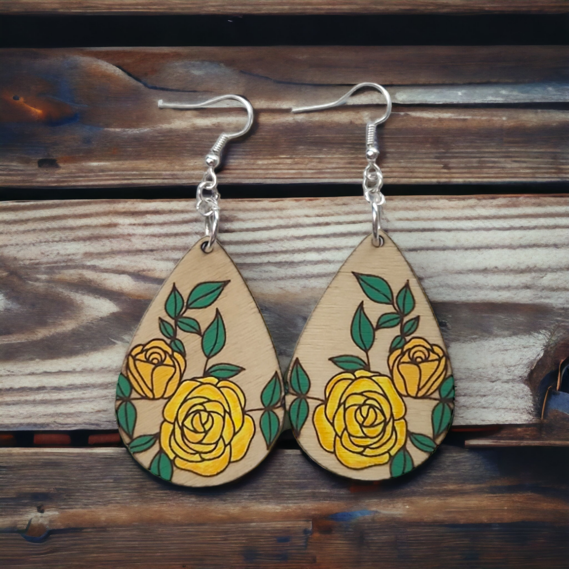 Order your own pair of handmade, hand-painted wooden dangle floral earrings today and add a touch of artistry to your style!