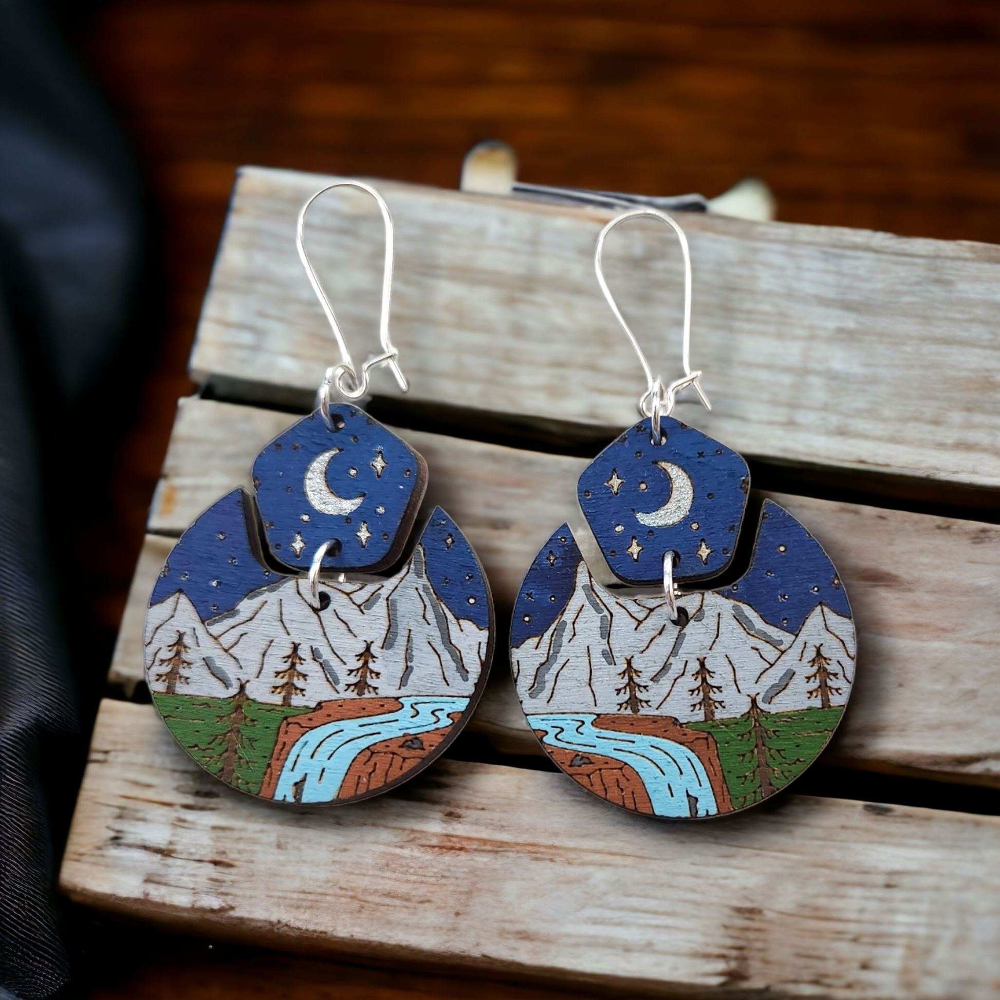 Experience the majestic beauty of nature with our exquisite collection of handmade wooden mountain scene earrings. Crafted with precision and artistry, these unique accessories allow you to showcase your love for the outdoors and express your adventurous spirit.