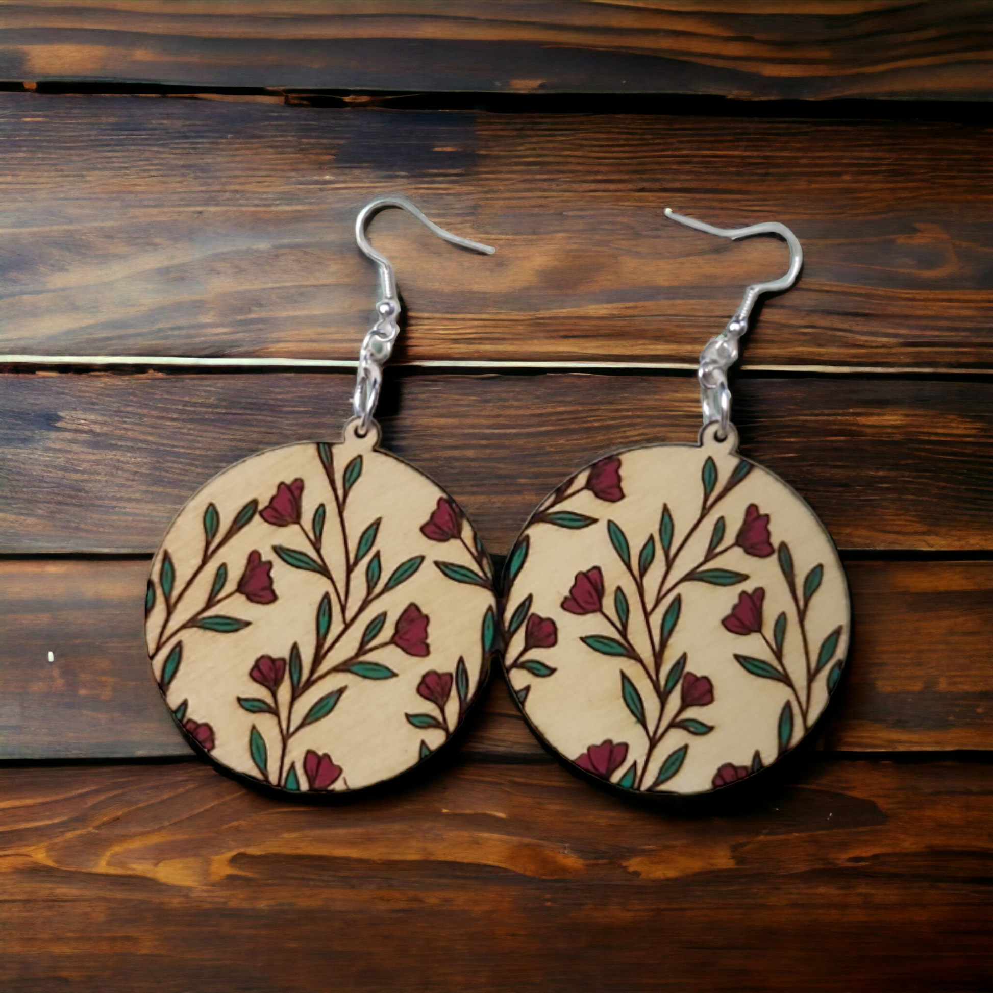 Order your own pair of handmade, hand-painted wooden dangle floral earrings today and add a touch of artistry to your style!