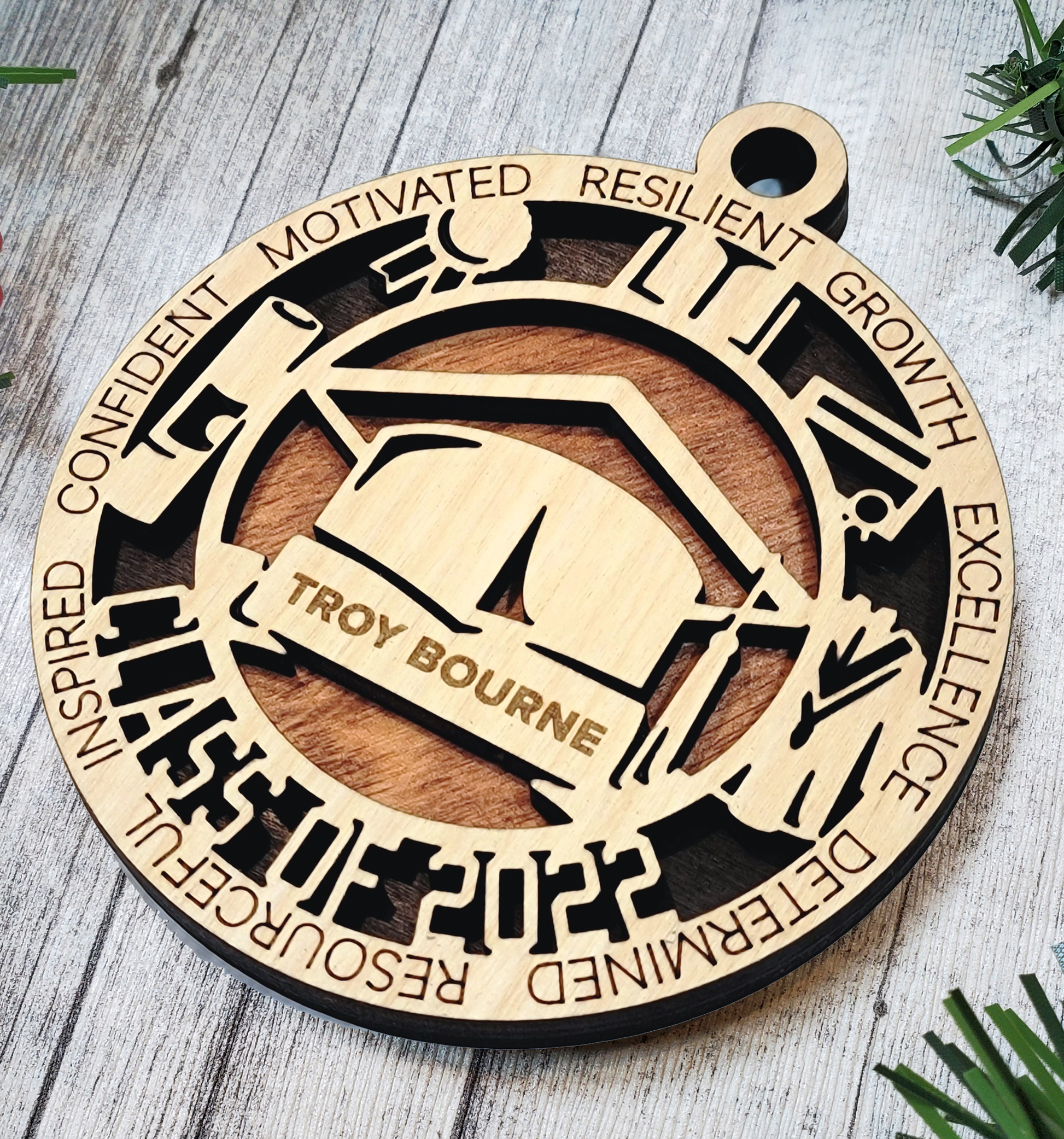 Celebrate your graduate's success with our handmade, wooden, customizable graduation ornament.
