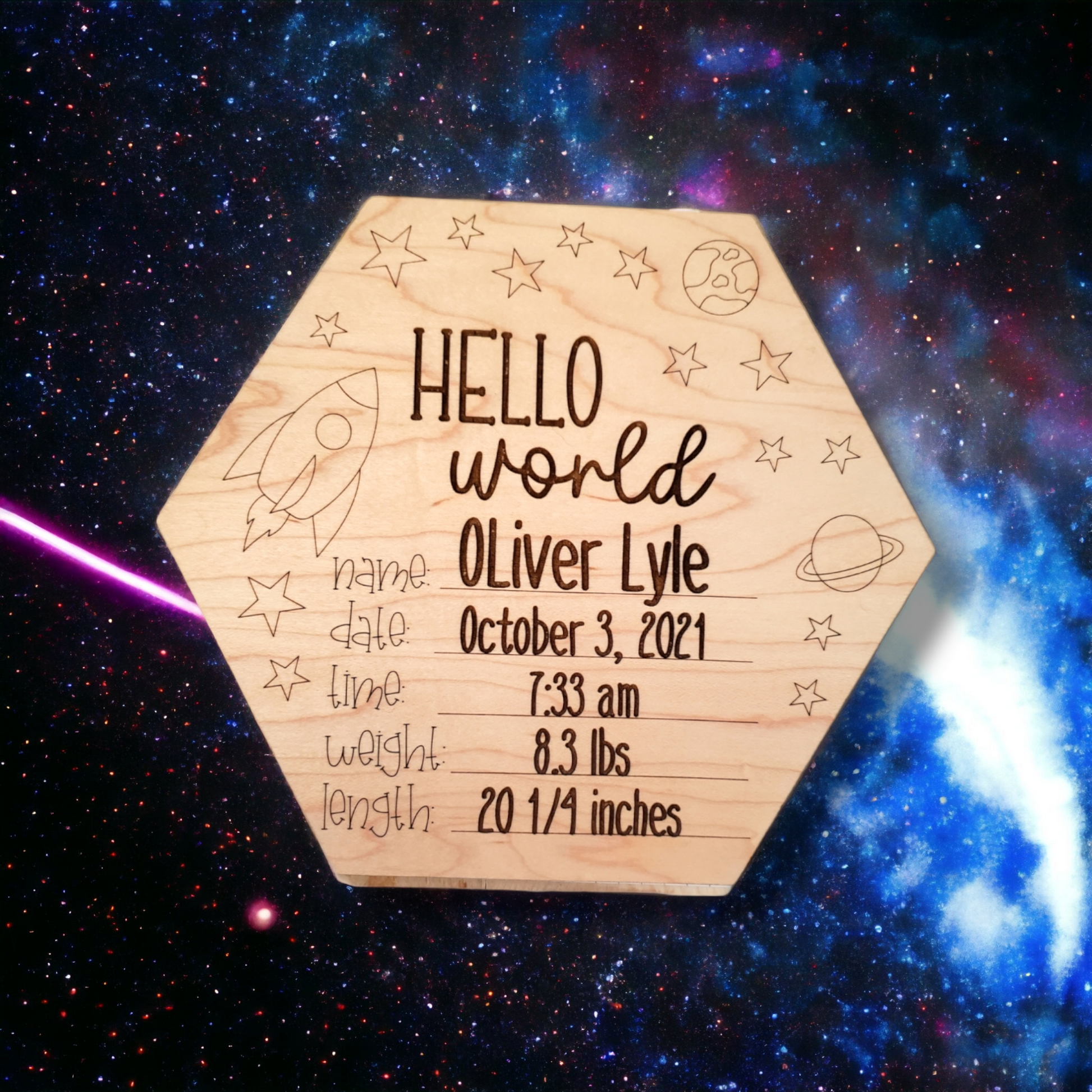 "Hello World" Handmade Wooden Birth Announcement - A Heartfelt Introduction to Your Little One