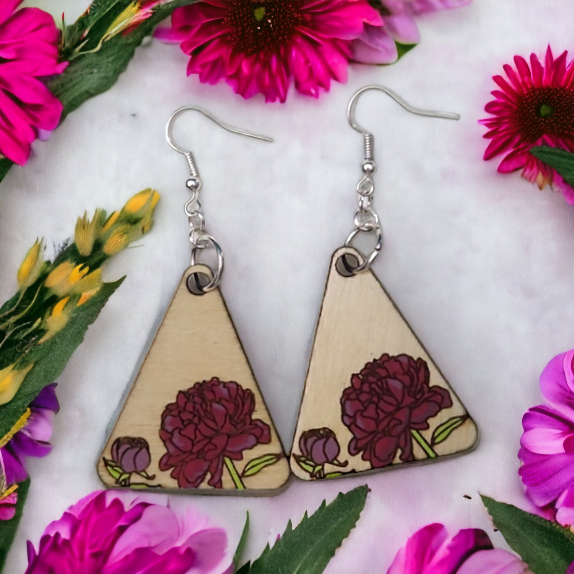 Order your own pair of handmade, hand-painted wooden dangle floral earrings today and add a touch of artistry to your style!