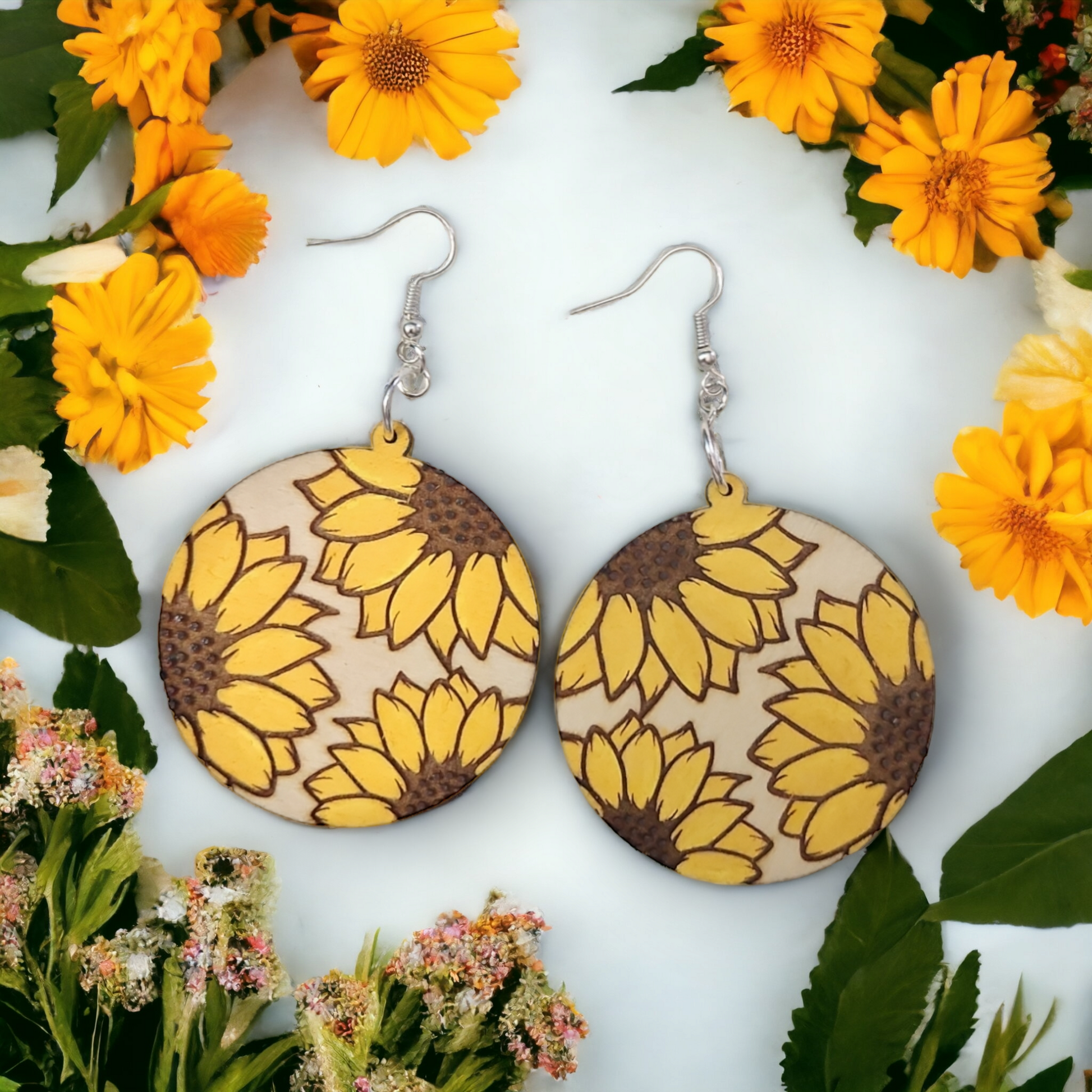 Order your own pair of handmade, hand-painted wooden dangle floral earrings today and add a touch of artistry to your style!