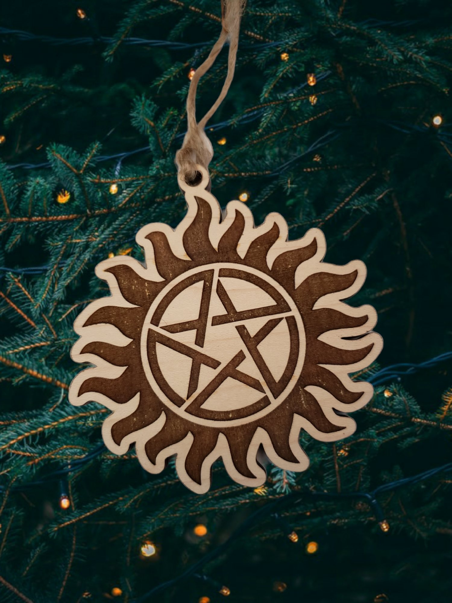 Our wooden, engraved anti-possession symbol ornament is a must-have for any fan of the show. Don't miss out on this opportunity to bring a little bit of supernatural protection to your home this holiday season. Order yours today!