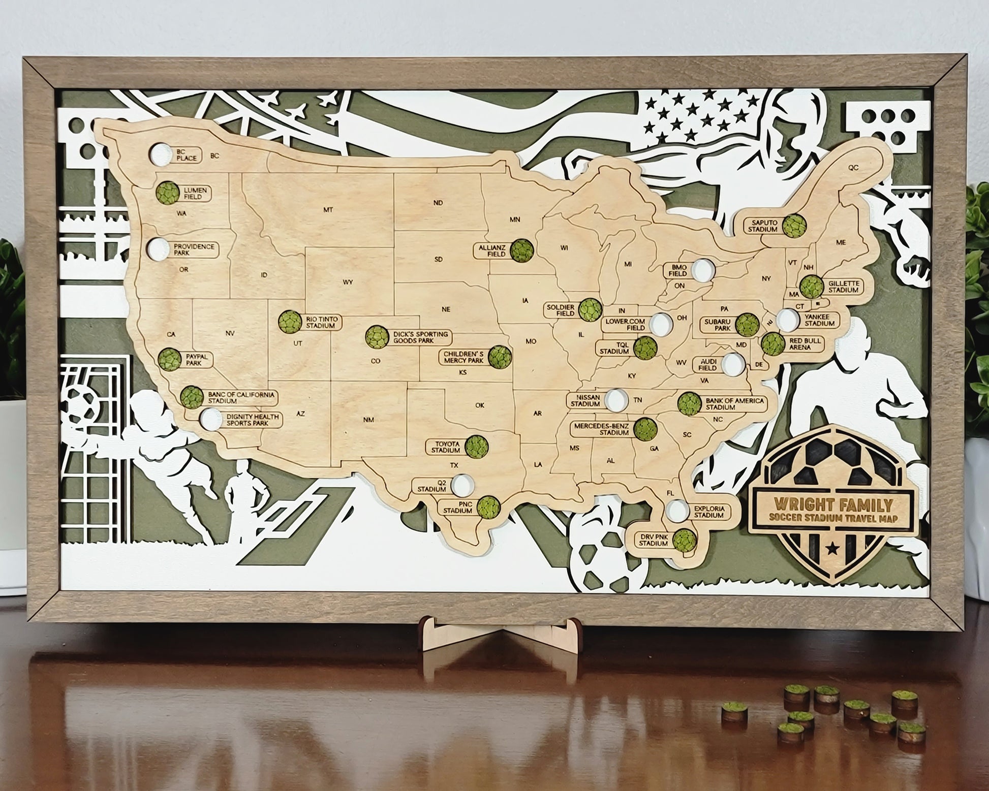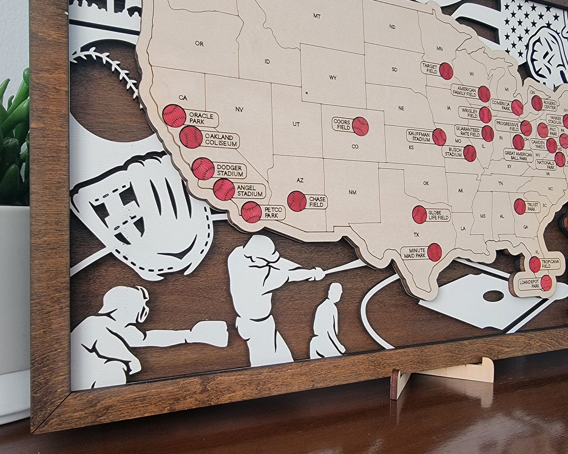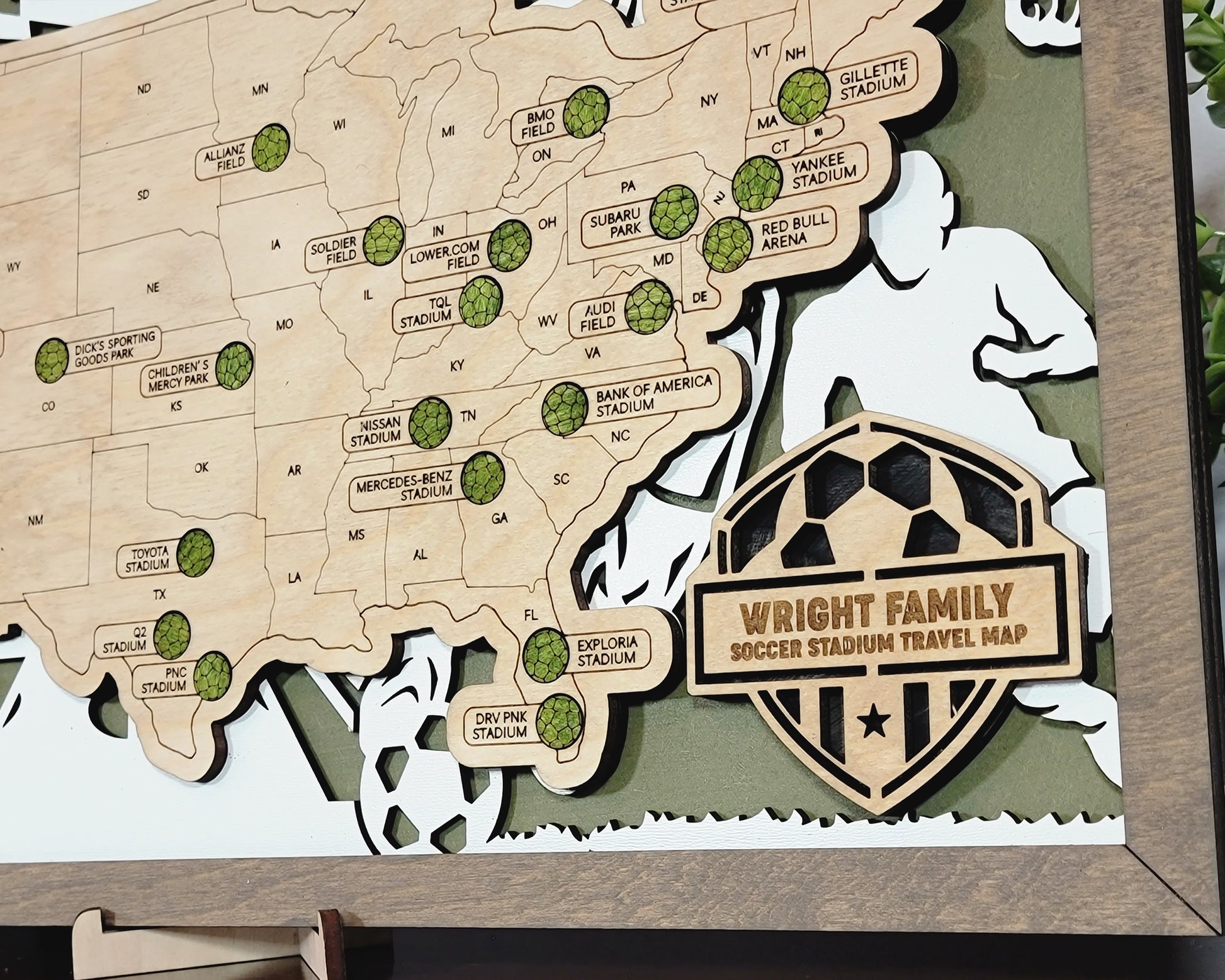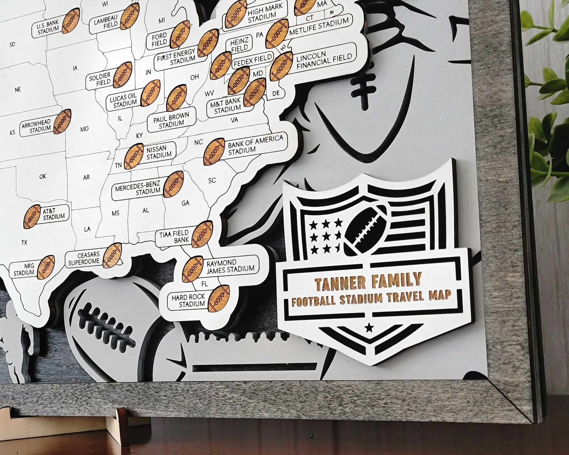 Introducing our handmade wooden sports stadium map – a perfect gift for the ultimate sports fan!