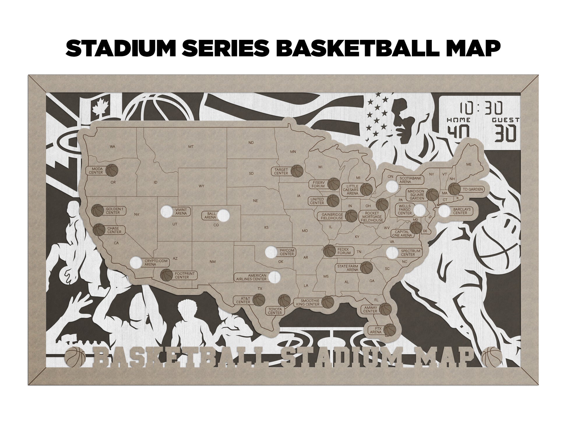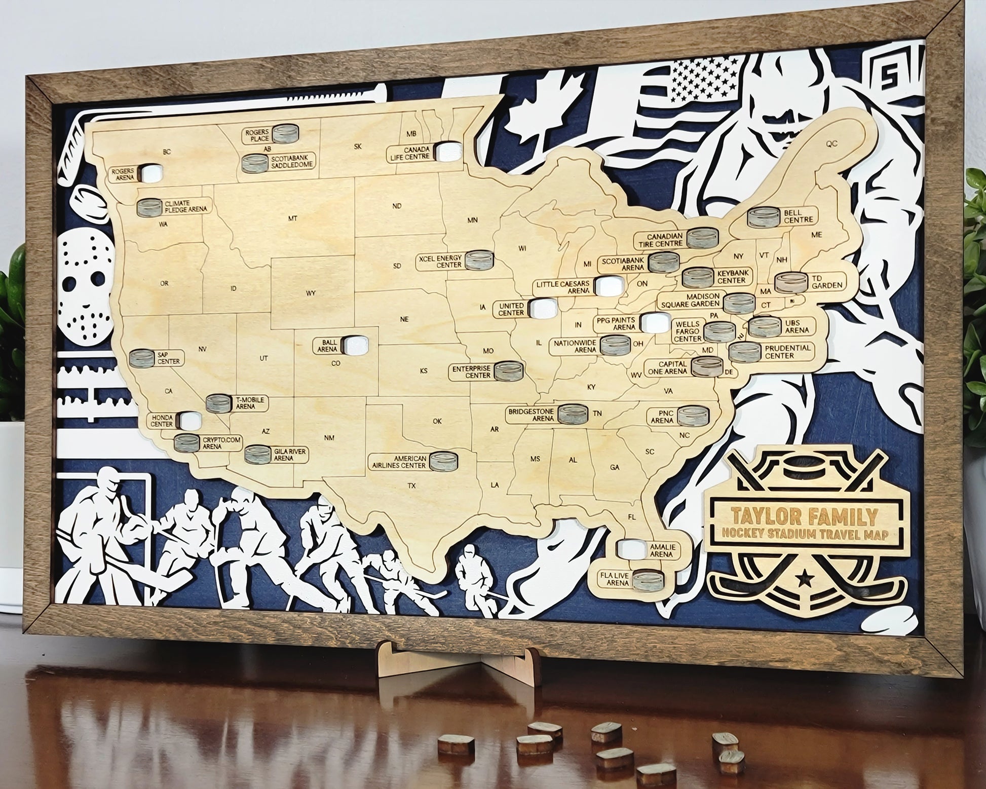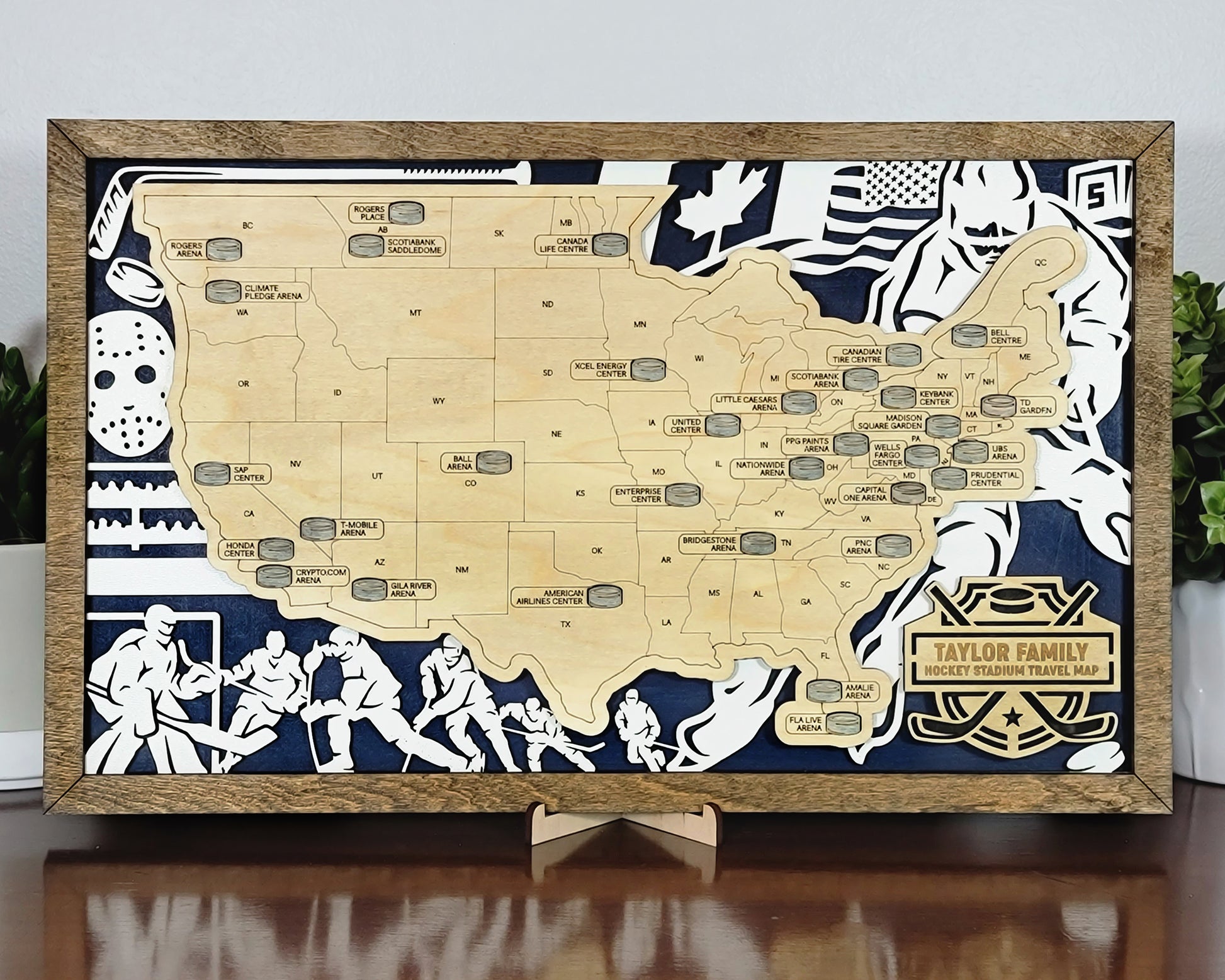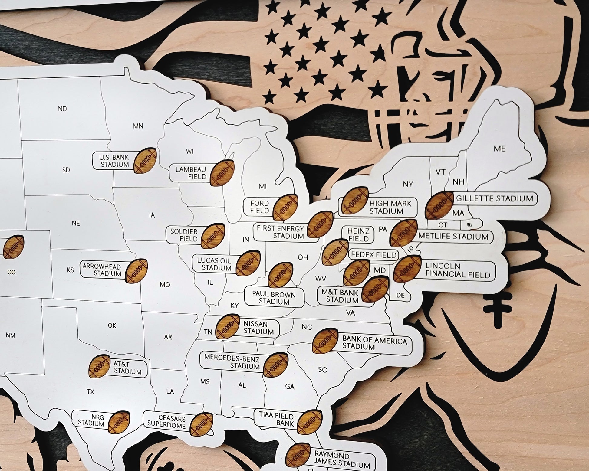 Introducing our handmade wooden sports stadium map – a perfect gift for the ultimate sports fan!