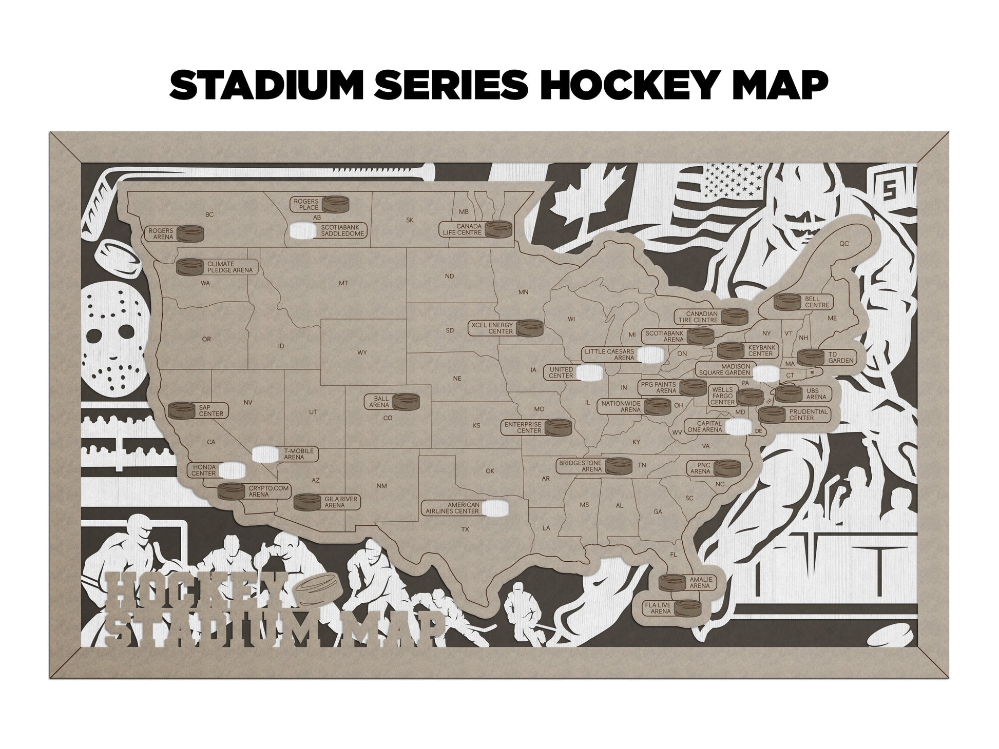 This map is not only a stunning piece of art, but it is also a useful tool for tracking your travels to different sports stadiums across the country.